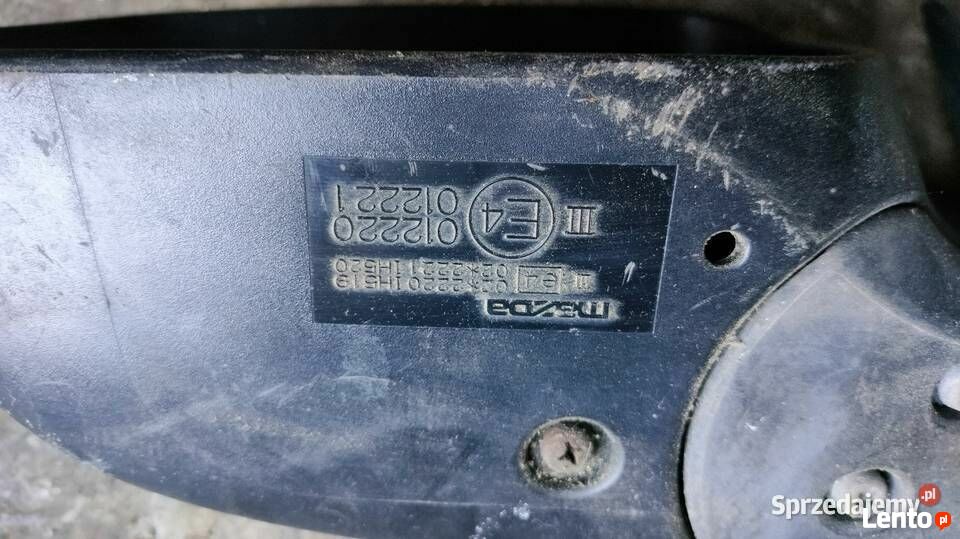 Sprzedam używane, kompletne lusterko boczne Lewe (strona kierowcy) do samochodów marki MAZDA. Lusterko pasuje prawdopodobnie do: MAZDA 3 I (BK) (lata prod. 2003–2009) MAZDA 6 I (GG/GY) (lata prod. 2002–2007) Kluczowe parametry i funkcje: Strona zabudowy: Lewa (LP) Funkcje: Elektrycznie regulowane i ogrzewane. Wtyczka: Posiada wtyczkę na 5 pinów (do weryfikacji na zdjęciu). Kolor: Srebrny/Jasnoszary (lakierowany). Numery / Kody E4 (do weryfikacji): 012220 / 012221. Stan wizualny jak na zdjęciach: Lusterko jest używane, nosi normalne ślady eksploatacji. Lakierowana obudowa posiada widoczne rysy i zadrapania. Szkło lustra całe. Stan wtyczki i mocowania do samodzielnej oceny na podstawie załączonych zdjęć. Proszę o dokładne porównanie numerów (012220, 012221) oraz wtyczki w celu uniknięcia pomyłek!To ogłoszenie jest archiwalne i może być nieaktualne.