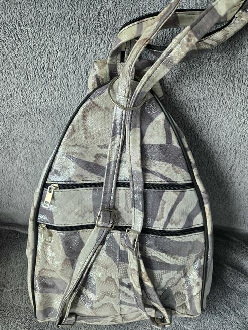 Plecak nowy ze skóry naturalnej w kolorze beżowo kremowo szarym,lekko nablyszczany, wzór jak na zdjęciu.z przodu 3 ...