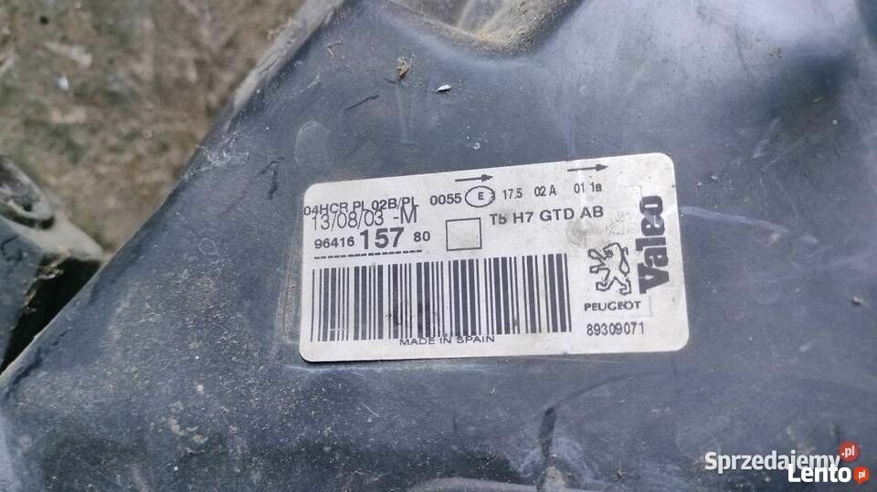Sprzedam używany, oryginalny reflektor przedni Lewy (strona kierowcy) firmy VALEO do samochodu PEUGEOT 307 (modele produkowane w latach 2001-2005, przed liftingiem). Kluczowe informacje o części: Strona zabudowy: Lewa (LP) Producent: VALEO Numer części OEM/Valeo: 9641615780 / 89309071 Typ żarówki: H7 (światła mijania/drogowe) Regulacja: Elektryczna (bez silniczka lub z silniczkiem – do weryfikacji przez kupującego) Data produkcji (na etykiecie): 13/08/03 Stan wizualny jak na zdjęciach: Lampa jest używana, klosz jest zmatowiały i wymaga polerowania. Obudowa i stan techniczny do samodzielnej oceny na podstawie załączonych zdjęć. Proszę sprawdzić numer katalogowy przed zakupem. Idealny na wymianę lub jako dawca części.To ogłoszenie jest archiwalne i może być nieaktualne.